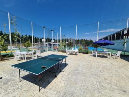 • Pishina – Pishina është gjysëm olimpike me përmasa 25 m x 12 m dhe thellësi 1.5 m. Pishina ka 5 linja gare dhe është e përshtatshme për kurse noti, kompeticione të ndryshme, kampe verore dhe evente të ndryshme.