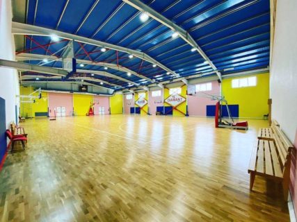 • Salla B – fushë me përmasa standarde 38 m x 22 m. E pajisur me 8 kosha basketbolli, kjo fushë është e përshtatshme për kurse basketbolli e trajnime në lojra me dorë. Salla ka katër dhoma zhveshje, tualet, sistem kondicioneri dhe ndricim led.